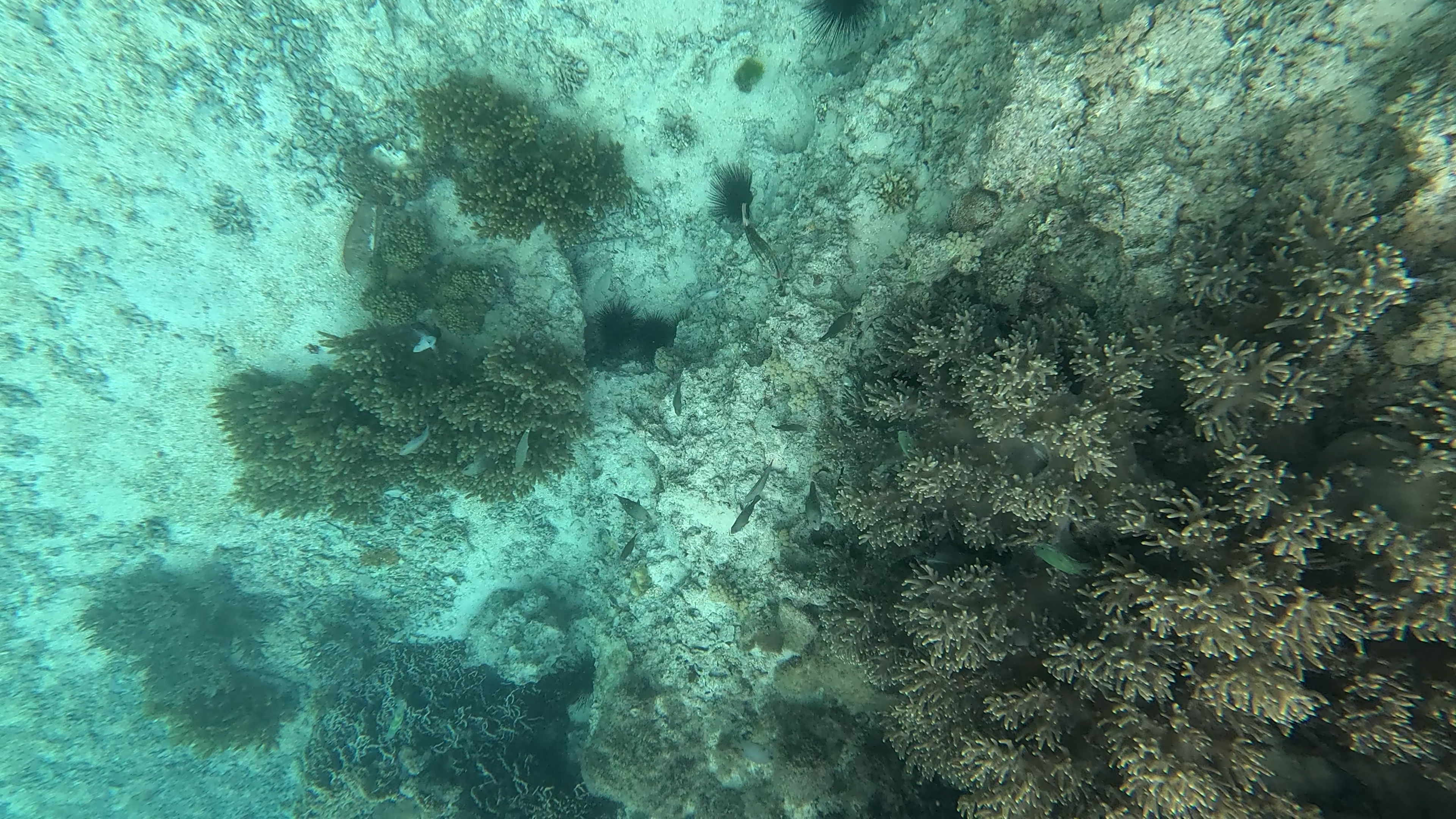 물속에 몸을 담그는 순간, 남국의 따뜻한 바다가 우리를 감쌌다. 바닷속으로 얼굴을 넣자마자 투명한 물살 속으로 작은 물고기들이 유유히 헤엄치는 모습이 보였다.