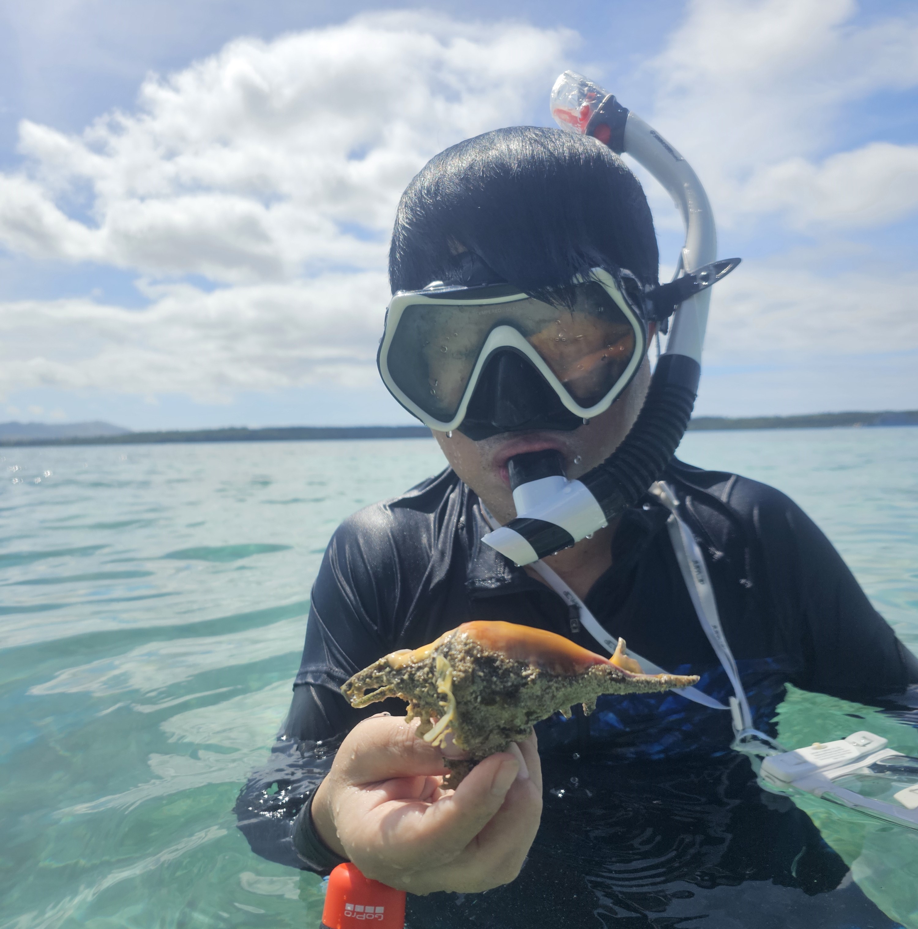나는 스노클링을 해서 위장하고 있는 거미 소라를 두 개 더 찾아냈다.