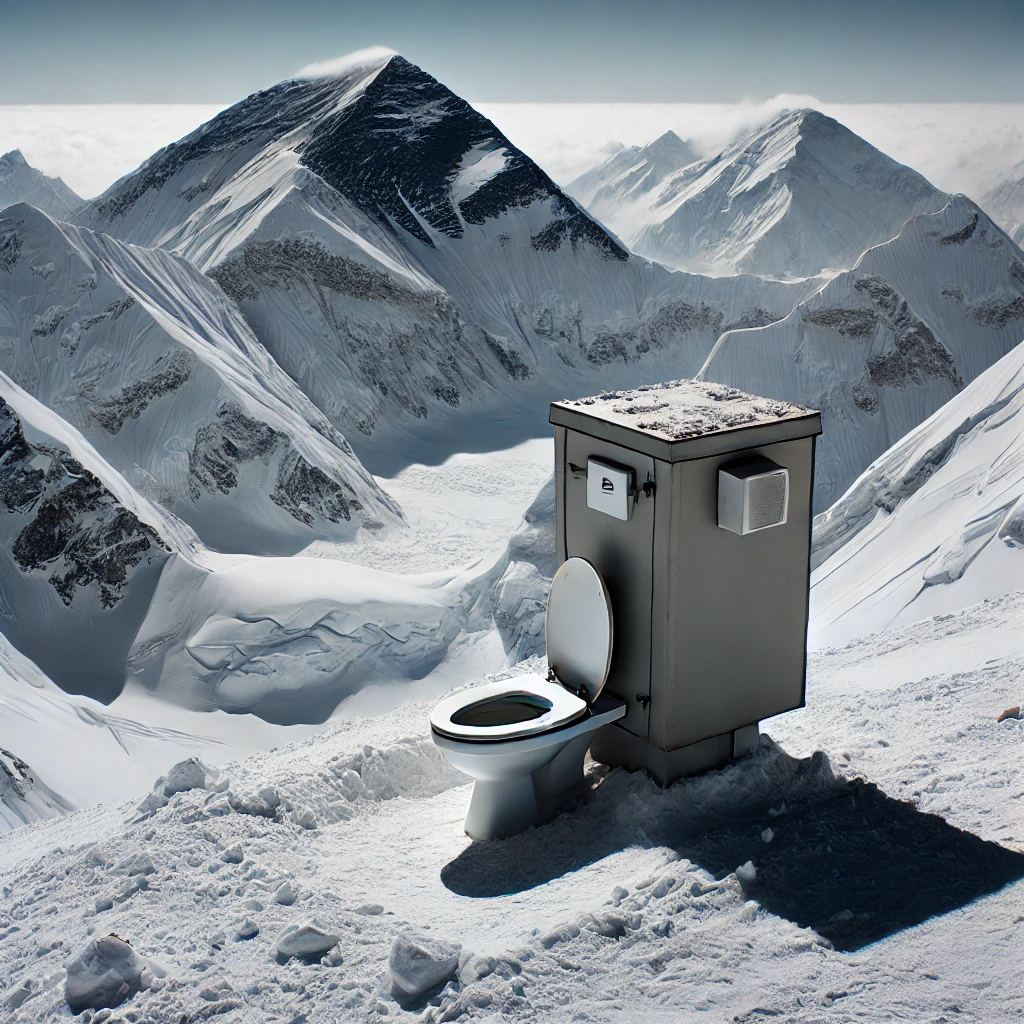 에베레스트에 도전하는 사람들은 산에서 평균 2주 정도 머문다고 한다. 베이스캠프에는 그나마 화장실이라고 부를 만한 것이 있고 비교적 낮은 고도에서는 땅을 파서 간이 화장실을 만든다고 한다. 하지만 고도가 높아질수록 눈이 높게 쌓이거나 땅이 굳어 있어 땅을 파기도 어려워 엉덩이가 얼어붙는 것을 각오하고 용변을 봐야 한다.