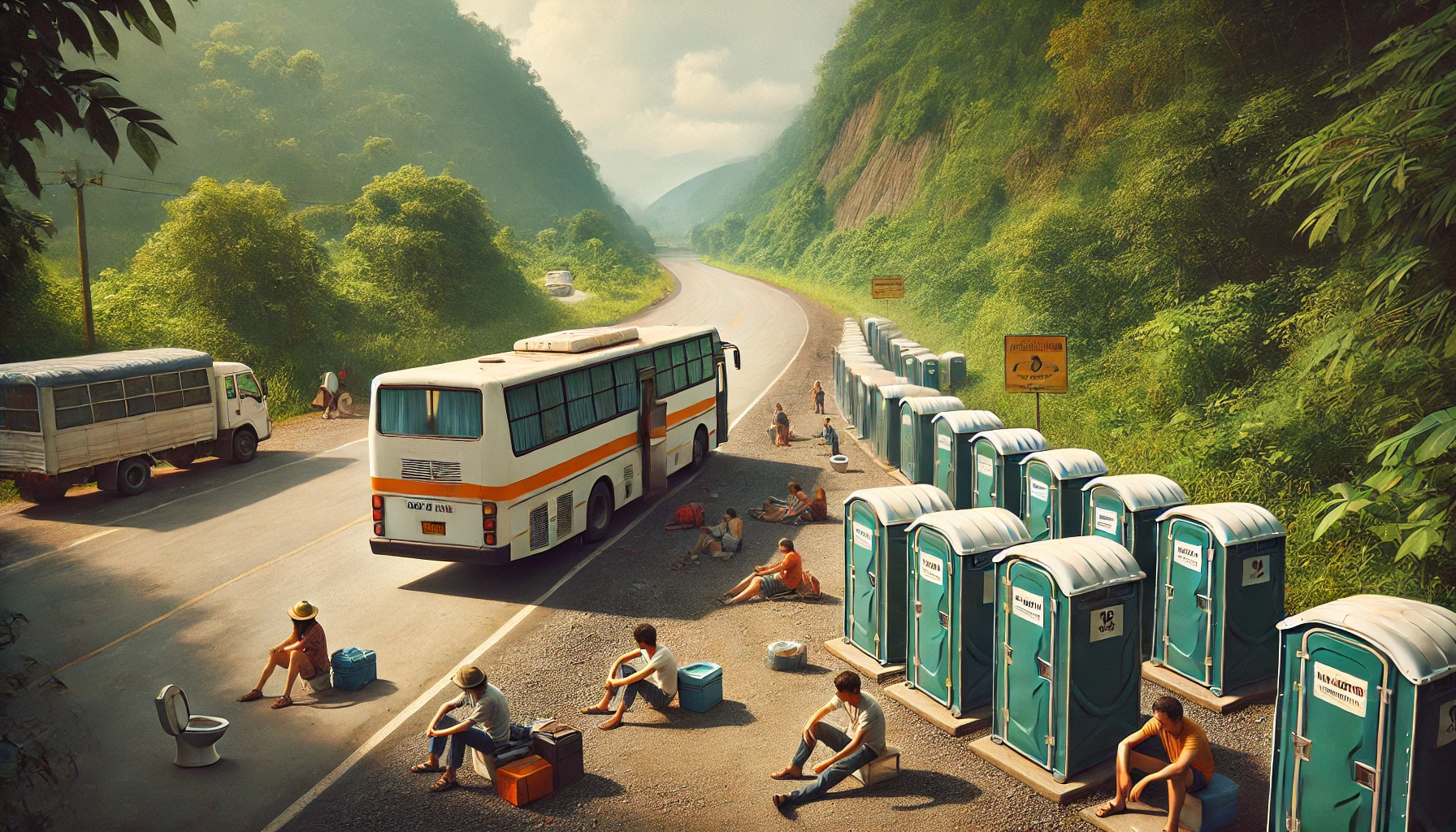 그러나 버스에서 내린 순간, 남자 승객들이 하나같이 들판을 향해 전력 질주하기 시작했다.