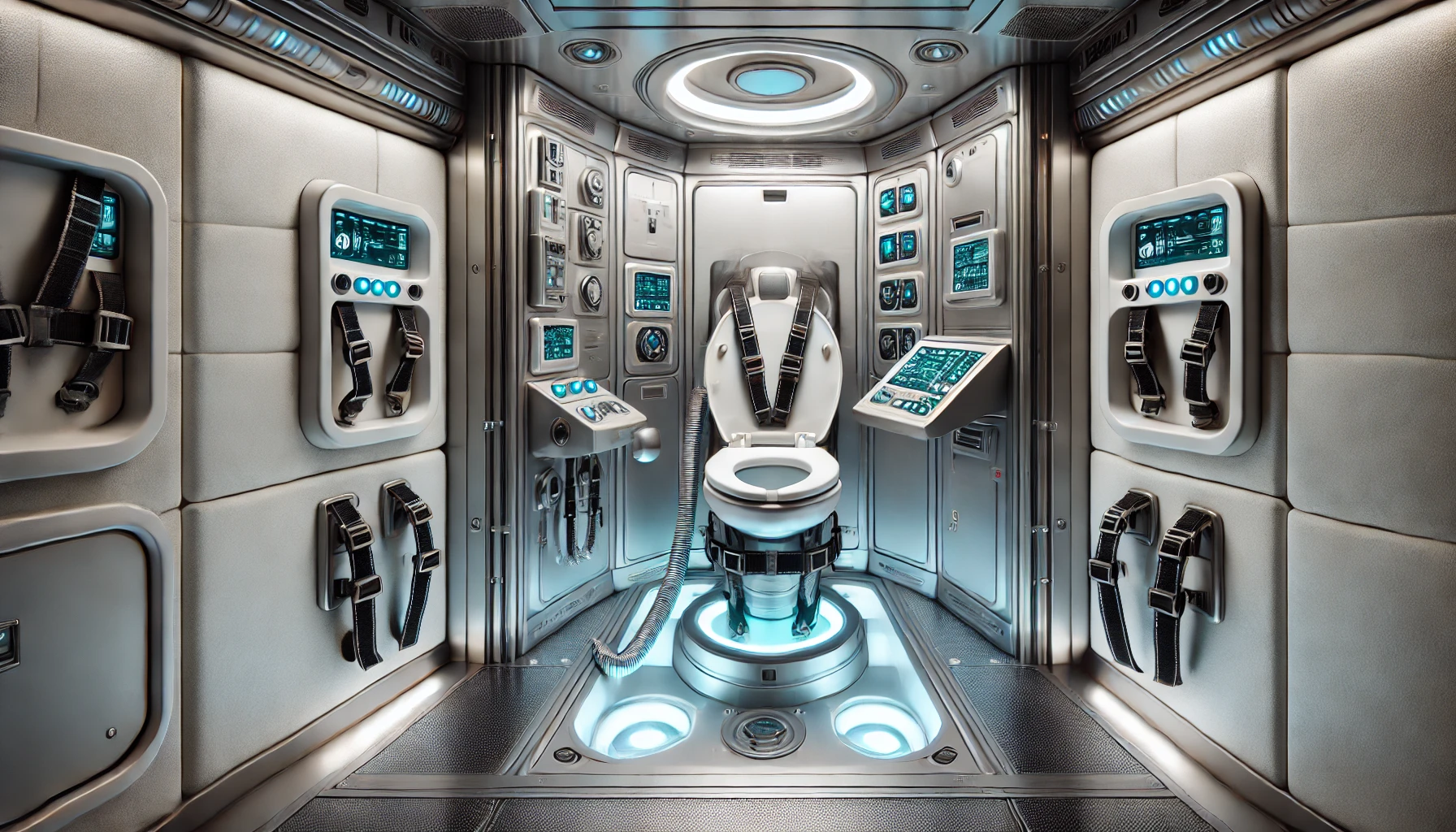 중력이 없는 환경에서 소변과 대변이 떠다니지 않도록 진공 흡입 시스템을 사용하며, 소변은 정수 과정을 거쳐 다시 식수로 사용된다.