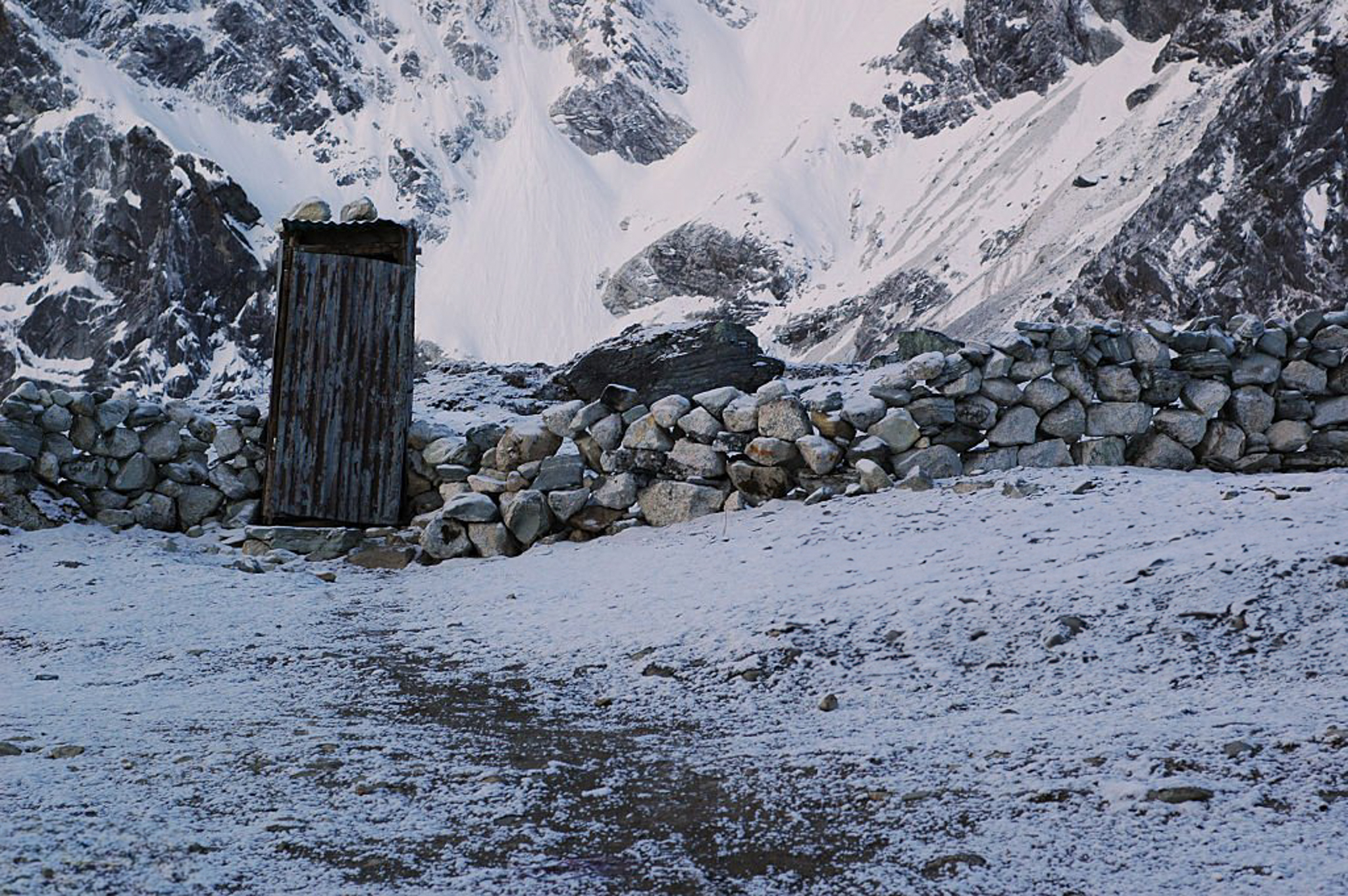 해발 약 5,364m에 위치한 베이스캠프는 등반가들이 머무르는 기지로, 이곳에는 고립된 화장실이 마련되어 있다.